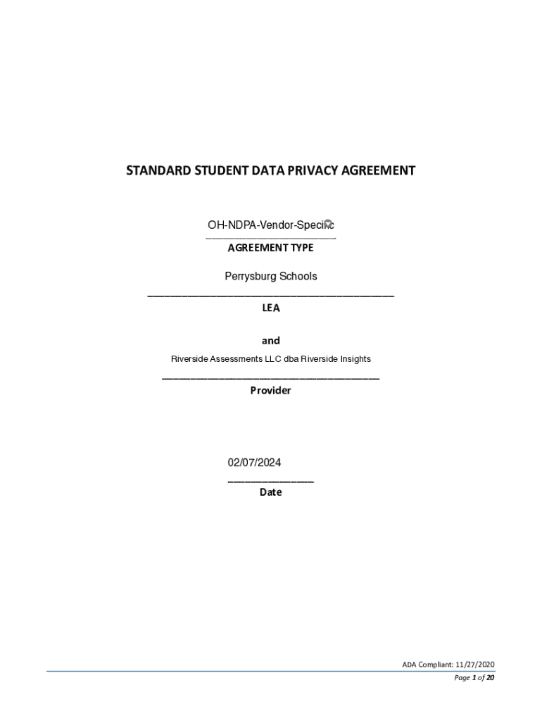 Date ADA Compliant 11/27/2020-Page 1 of 20ThisStudentDataPrivacyAgreement(DPA)isenteredintoonthedateoffullexecution(effective