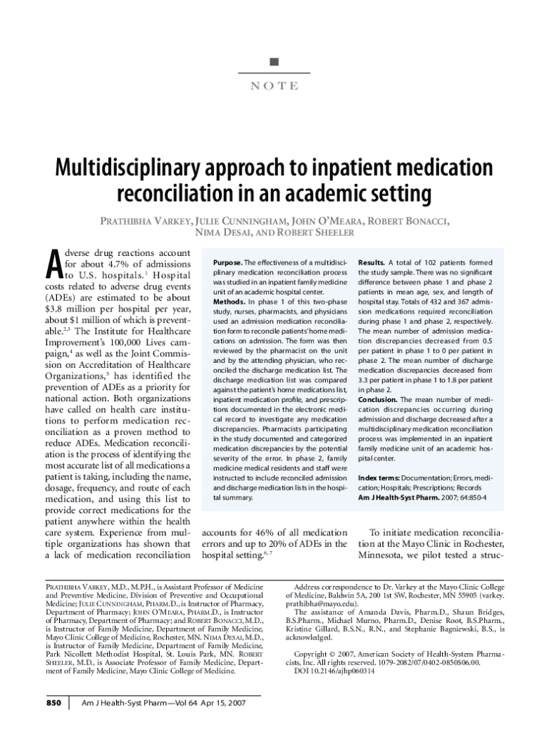 Get the free Inpatient Medication Reconciliation in an Academic Setting - citeseerx ist psu