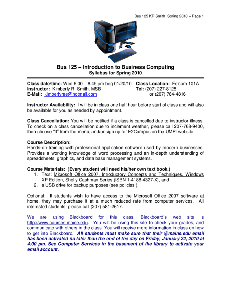 Bus 125 KR Smith, Spring 2010 Page 1Bus 125 Introduction to Business Computing
