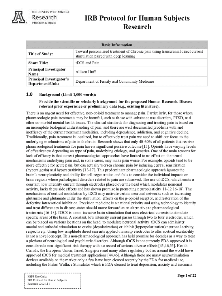 Title of Study:Toward personalized treatment of Chronic pain using transcranial direct current