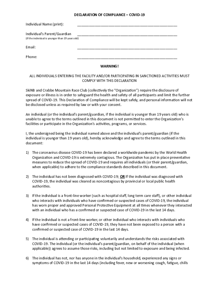 DECLARATION OF COMPLIANCE COVID-19