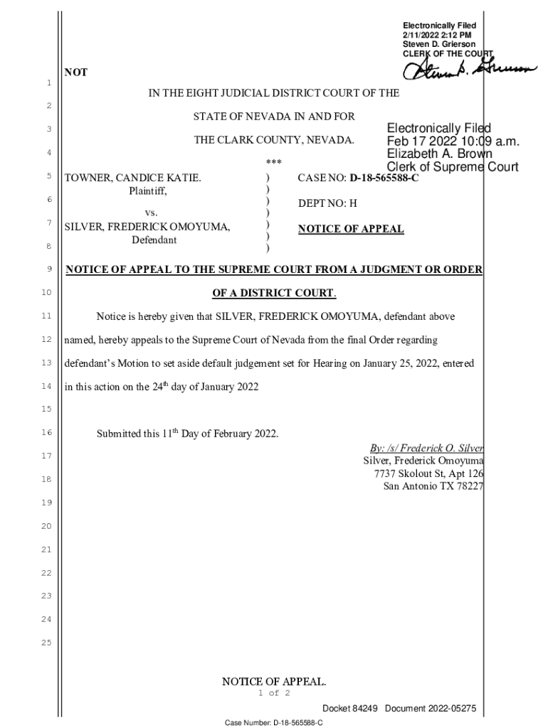 Electronically Filed 2/11/2022 2:12 PM Steven D. Grierson CLERK OF THE COURT1 2 3NOT IN THE EIGHT JUDICIAL DISTRICT COURT OF THE STATE OF NEVADA IN AND FOR THE CLARK COUNTY, NEVADA.4 5 6 7 8*** )