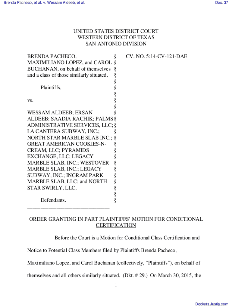 Brenda Pacheco, et al. v. Essay Adeeb, et al. Doc. 37UNITED STATES DISTRICT COURT