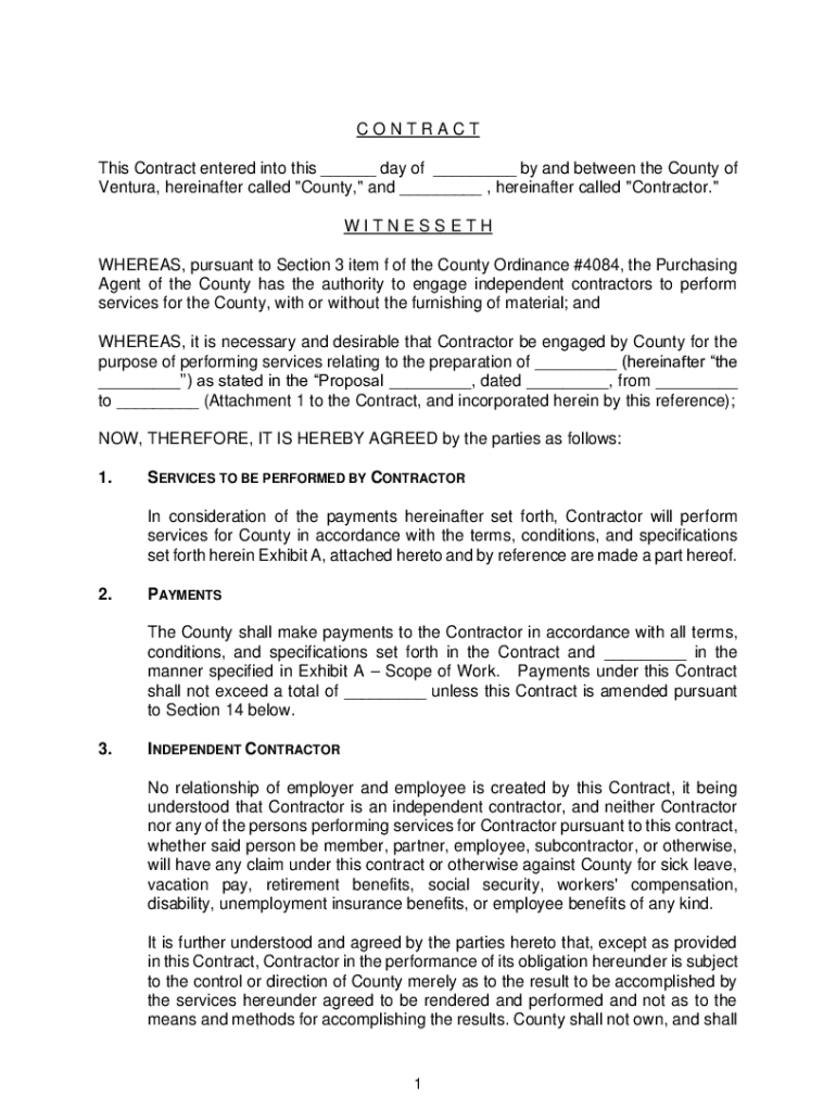 Ventura, hereinafter called \”County, \” and ___, hereinafter called \”Contractor.\”