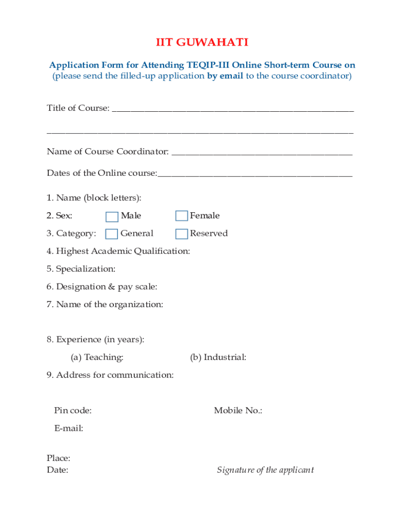 Get the free Application Form for Attending TEQIP-III Online Short-term Course on