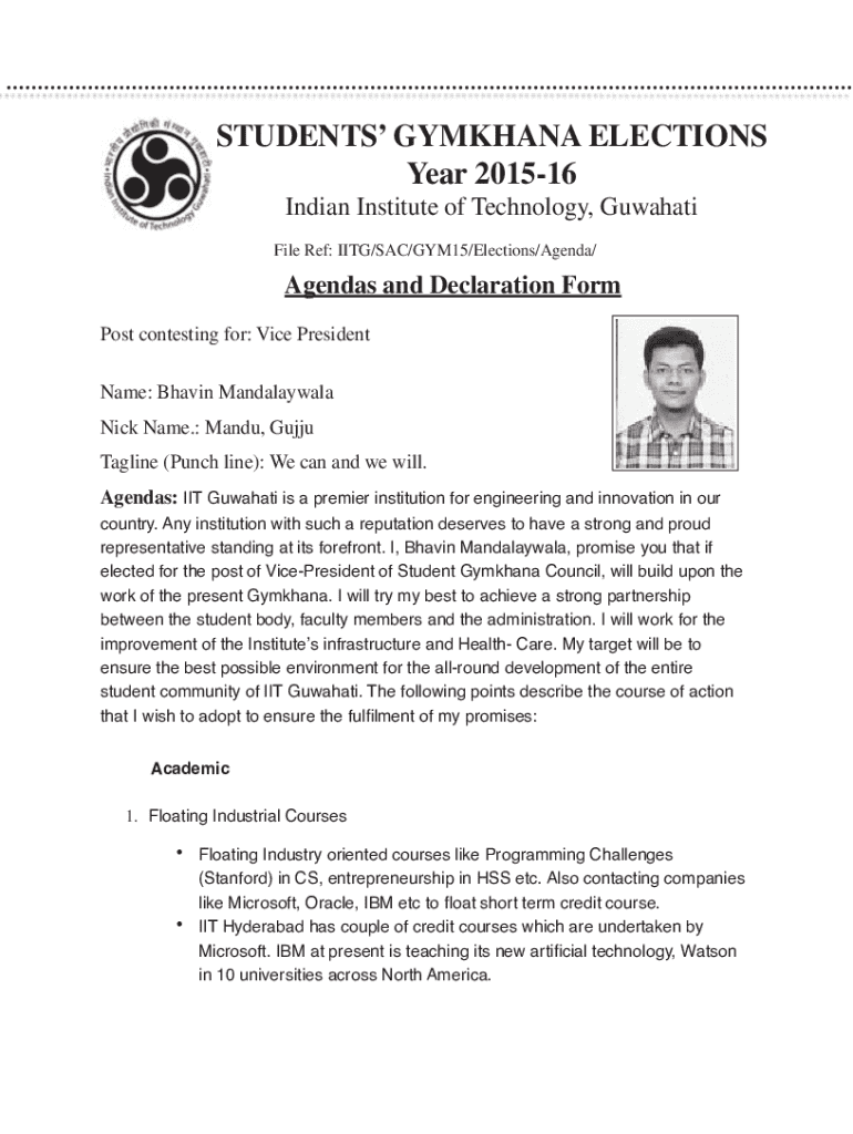 File Ref: IIT/SAC/GYM15/Elections/Agenda/Agendas and Declaration Form