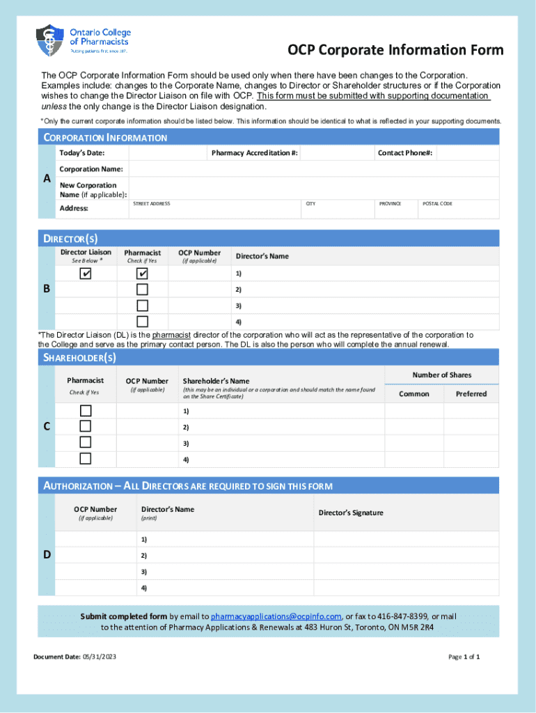 Fill out the forms completely and accurately, providing all requested information about the corporation and the changes being made.