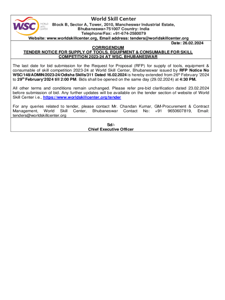 Website: www.worldskillcenter.org, Email address: tenders@worldskillcenter.org