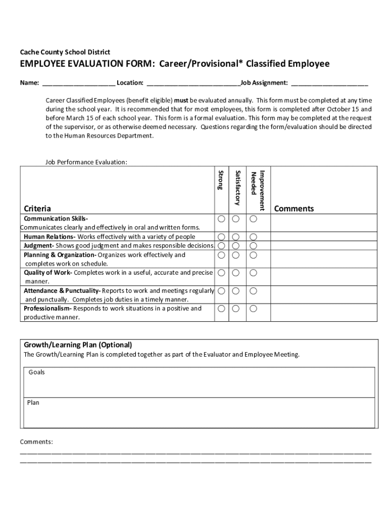 The employee evaluation form careerprovisional is a document used by employers to assess the performance, skills, and overall contributions of employees throughout their career development.