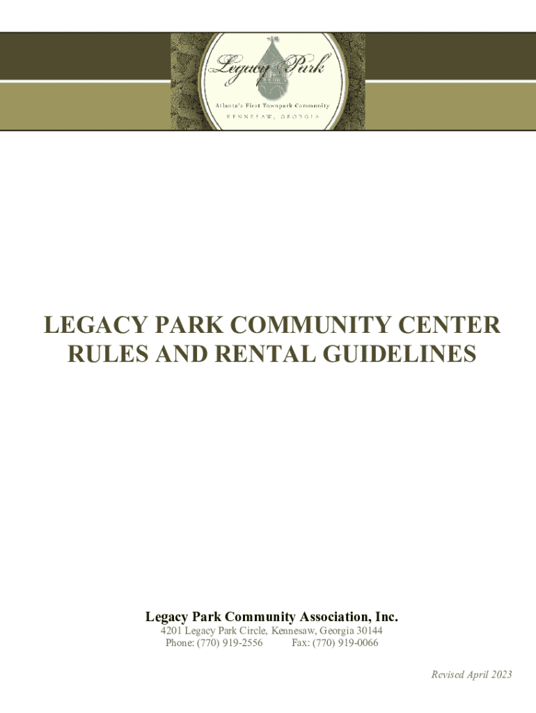 Get the free legacy park community center rules and rental guidelines