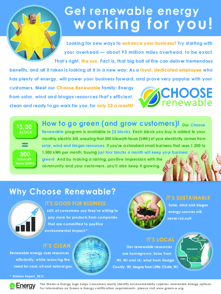 Get renewable energy working for you! Looking for new ways to enhance your business? Try starting with your overhead about 93 million miles overhead, to be exact. That's right, the sun. Fact is, that