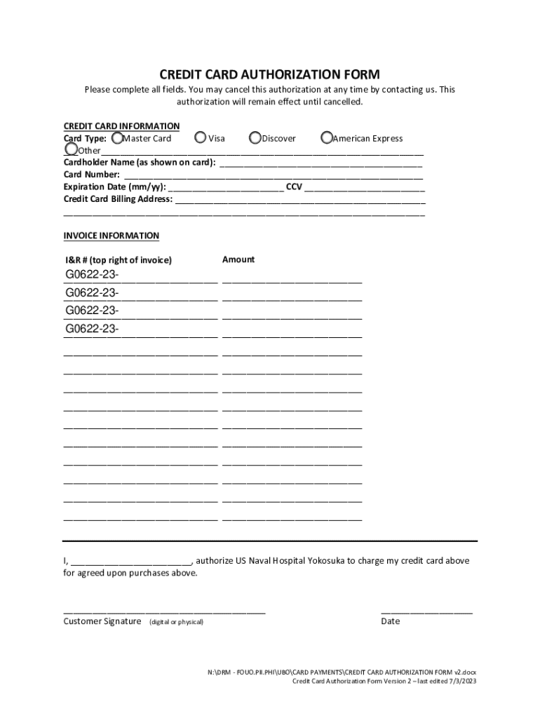 CREDIT CARD AUTHORIZATION Formulas complete all fields. You may cancel this authorization at any time by contacting us. This