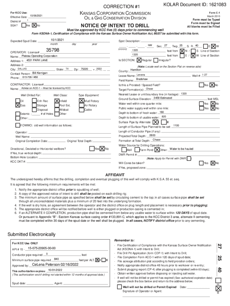 March 2010KANSAS CORPORATION COMMISSION10/06/2021Effective Date:Form must be Typed