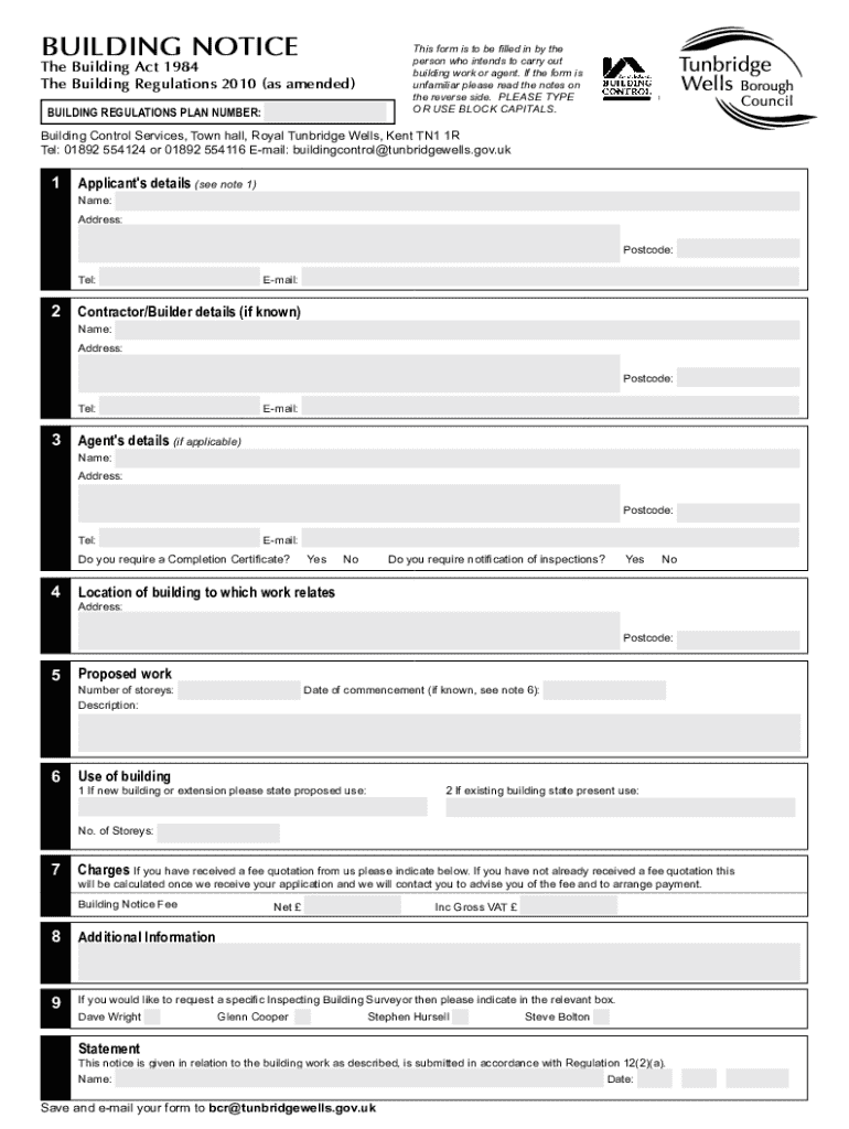 Get the free Building Regulation Charges Guidance notice 1 - tunbridgewells gov