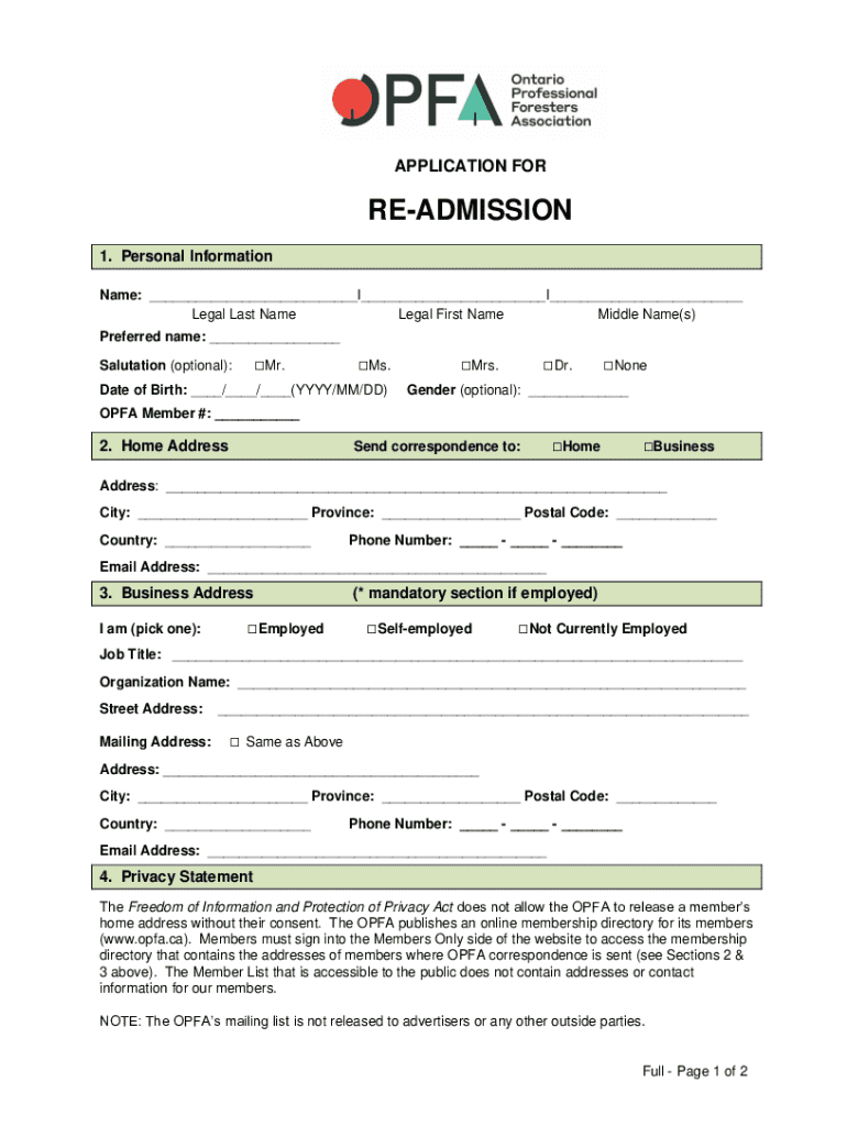 APPLICATION READMISSION