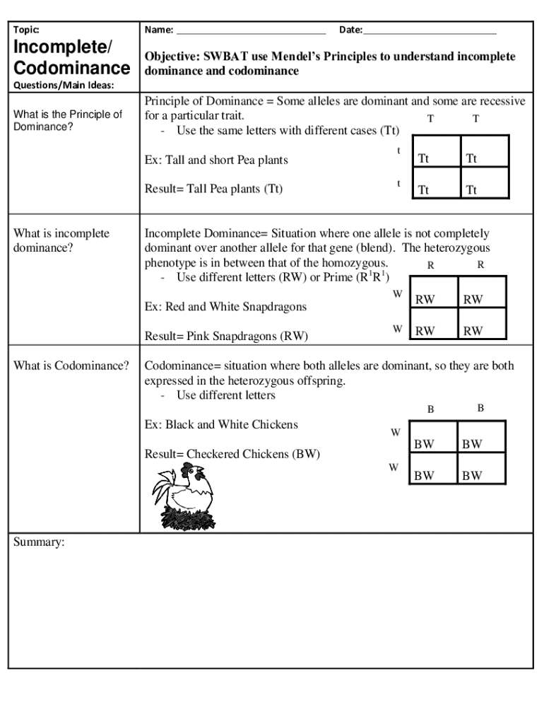 CodominanceObjective: SWEAT use Mendel's Principles to understand incomplete
