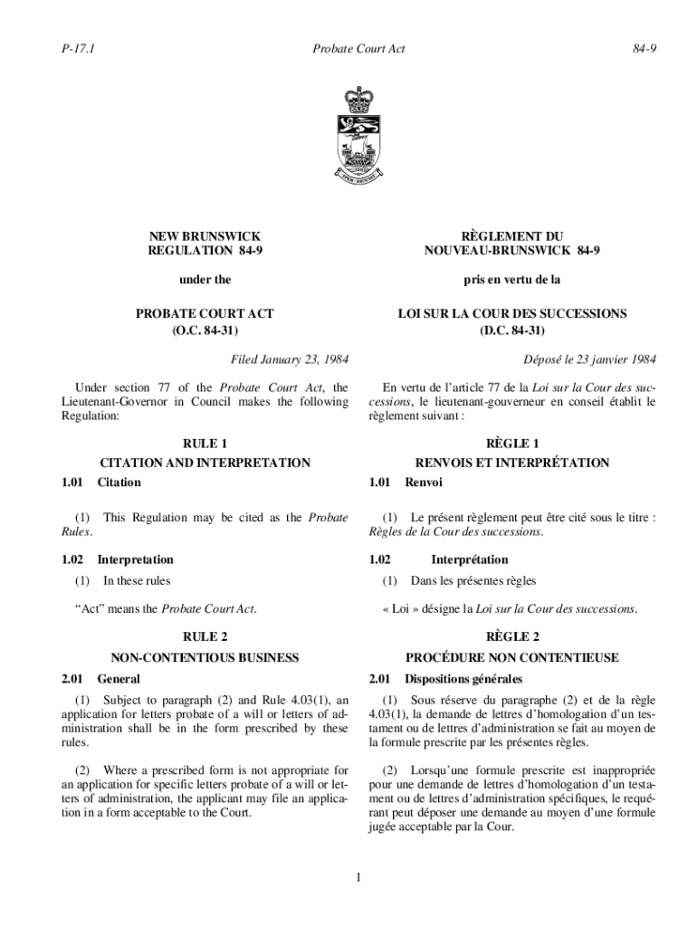 Obtenir le gratuit NEW BRUNSWICK REGULATION 84-9 under the ...
