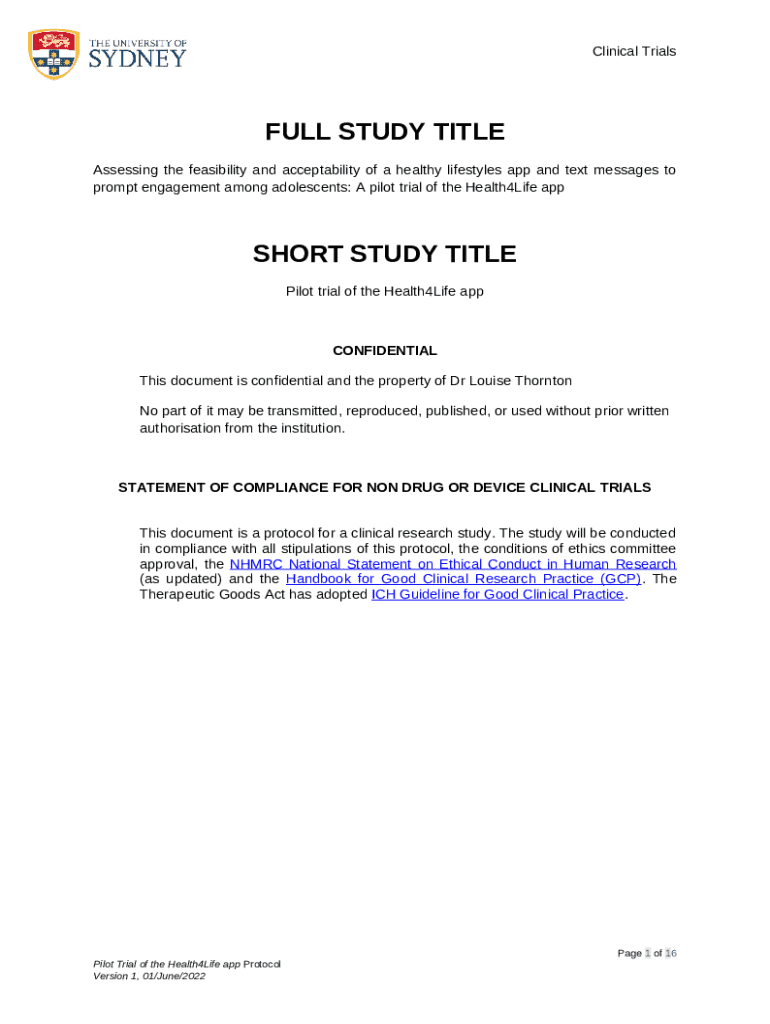 The Clinical Trial Protocol Template - Non drug or device is a fillable form in MS Word extension that has to be filled-out and signed for certain purpose. Next, it is furnished to the actual addressee to provide specific information of any kinds. The completion and signing is able in hard copy by hand or with an appropriate application e. g. PDFfiller. These applications help to fill out any PDF or Word file without printing them out. While doing that, you can customize it depending on the needs you have and put an official legal digital signature. Once finished, the user ought to send the Clinical Trial Protocol Template - Non drug or device to the respective recipient or several of them by mail and even fax. PDFfiller offers a feature and options that make your Word form printable. It includes a variety of settings when printing out. It does no matter how you will file a document - physically or by email - it will always look neat and firm. In order not to create a new file from the beginning over and over, make the original form as a template. After that, you will have an editable sample.