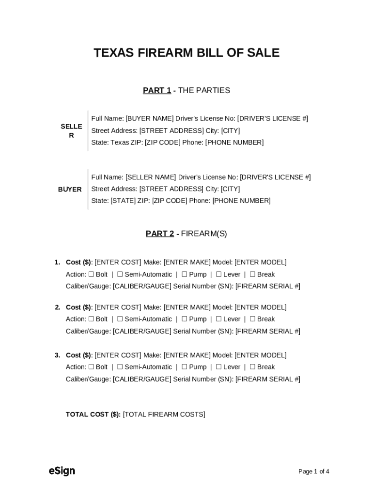 What is Free Texas Firearm Bill of Sale PDFWord Form?