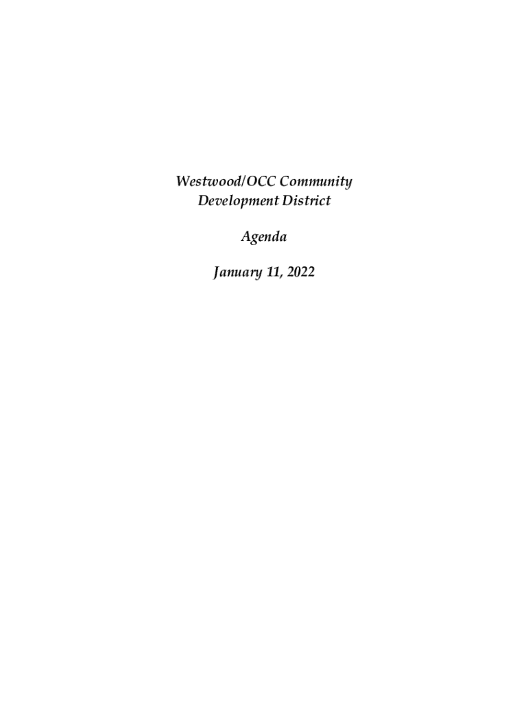 Westwood/OCC Community Development District Agenda January 11, 2022!!\"#$%\" \"\"Westwood/OCCCommunity Development District 219 E. Livingston Street, Orlando, Florida 32801 Phone: 4078415524 Fax: