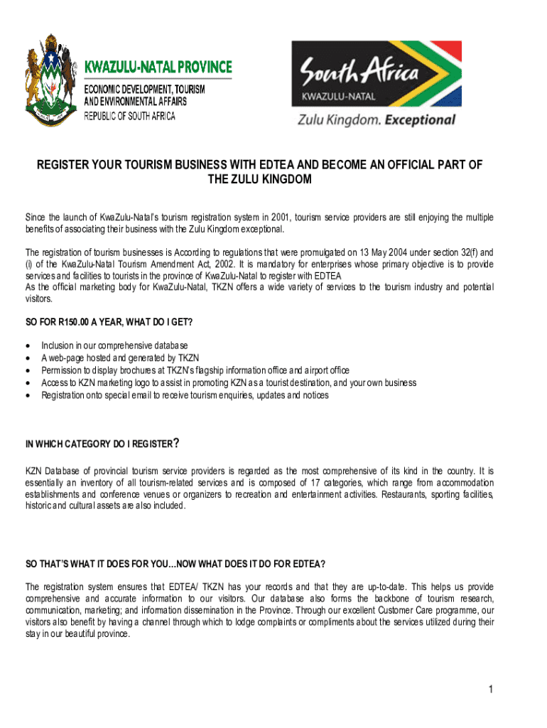 Since the launch of KwaZuluNatals tourism registration system in 2001, tourism service providers are still