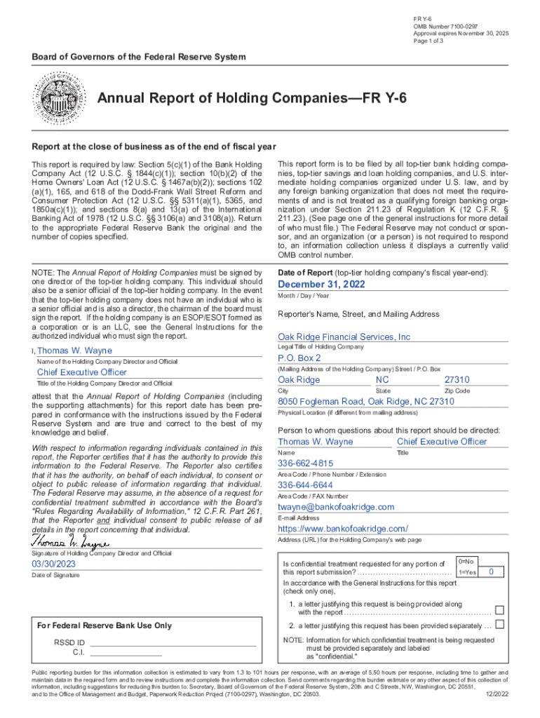 Approval expires November 30, 2025-Page 1 of 3Board of Governors of the Federal Reserve Systematical Report of Holding Companies FR Y6Report at the close of business as of