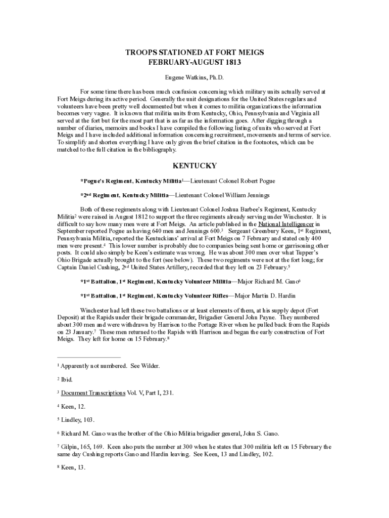 Eugene Watkins, Ph.D. For some time there has been much confusion concerning which military units actually served at Fort Meigs during its active period. Generally the unit designations for the United