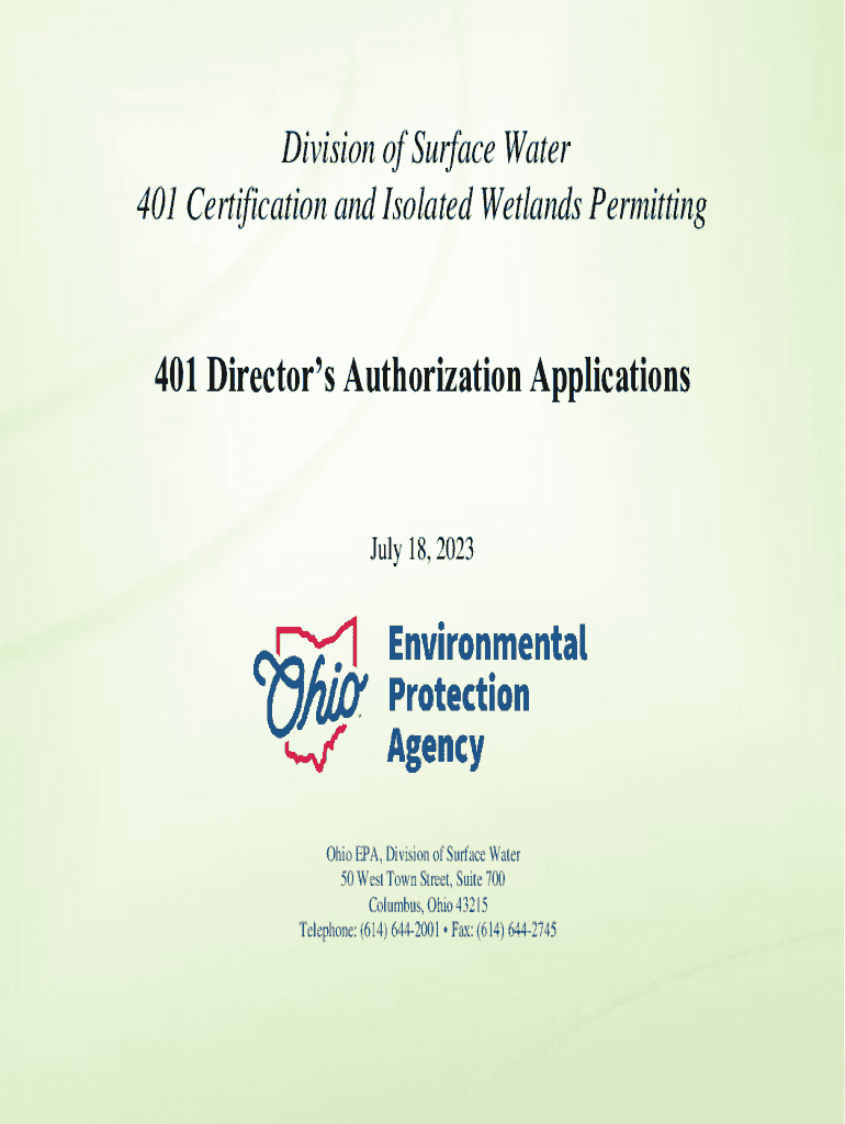 401 Certification and Isolated Wetlands Permitting401 Directors Authorization Applications July 18, 2023Ohio EPA, Division of Surface Water