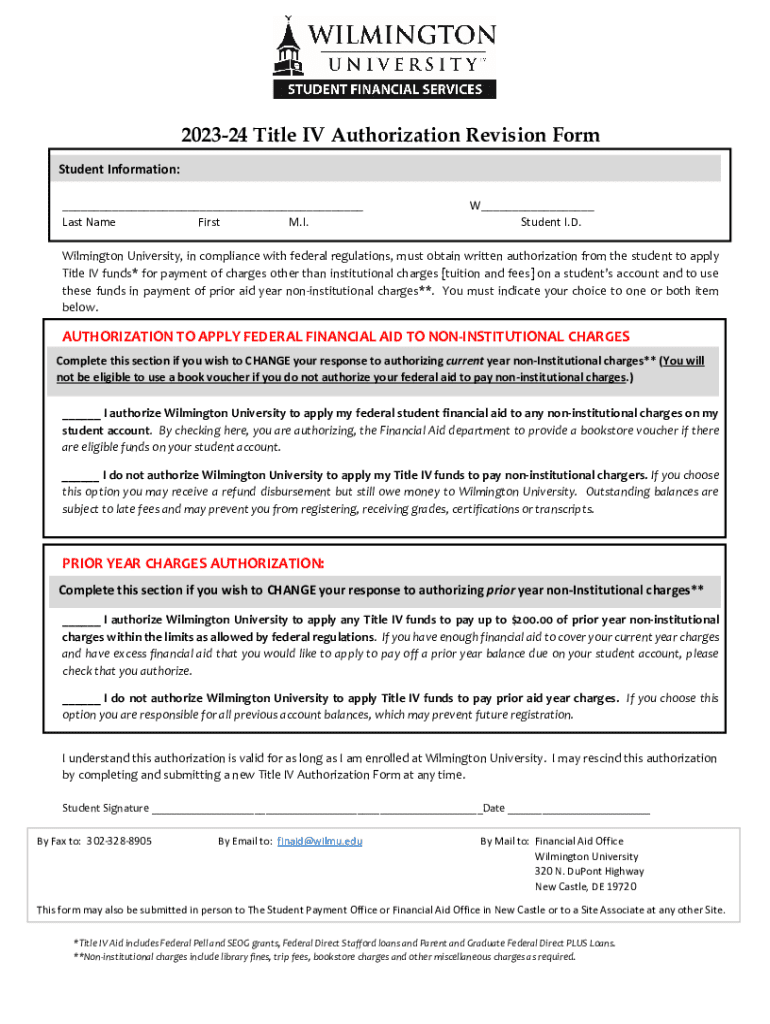 Get the free 2023-24 Title IV Authorization Revision Form
