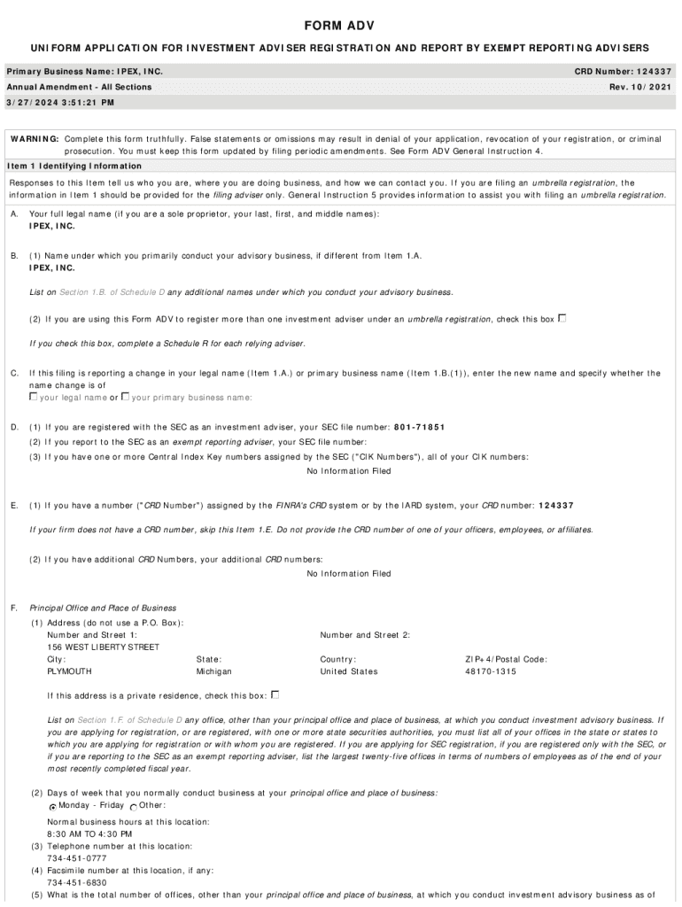 Primary Business Name: APEX, INC.CRD Number: 124337Annual Amendment All Sections Rev. 10/20213/27/2024