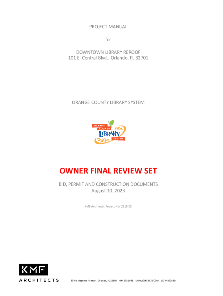 101 E. Central Blvd., Orlando, FL 32701ORANGE COUNTY LIBRARY SYSTEMOWNER FINAL REVIEW SET