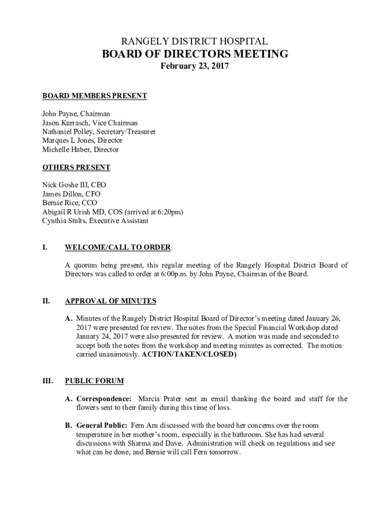 RANGE LY DISTRICT HOSPITALBOARD OF DIRECTORS MEETING