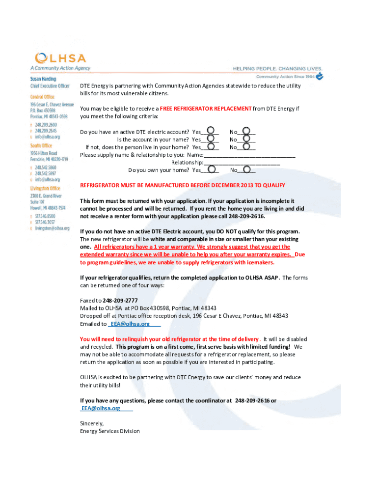 DUE Energy is partnering with Community Action Agencies statewide to reduce the utility bills for its most vulnerable citizens. You may be eligible to receive a FREE REFRIGERATOR REPLACEMENT from