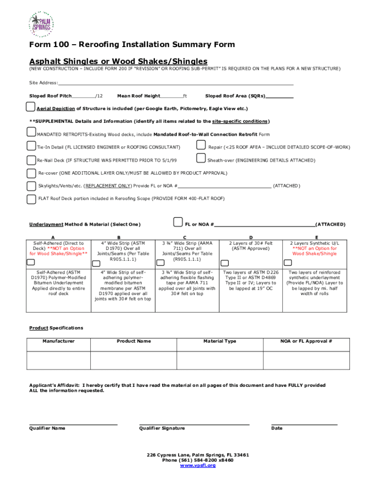Get the free Form 100Reroofing Installation Summary Form Asphalt Shingles ...