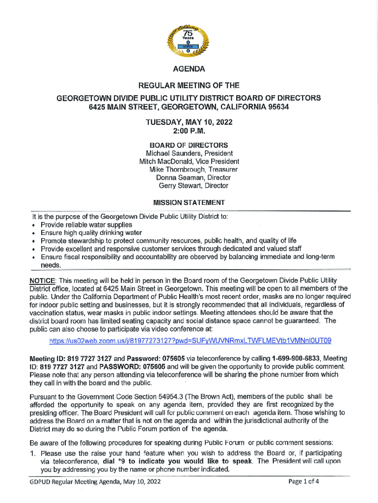 GEORGETOWNDIVIDEPUBLICUTILITYDISTRICTBOARDOFDIRECTORS6425MAINSTREET,