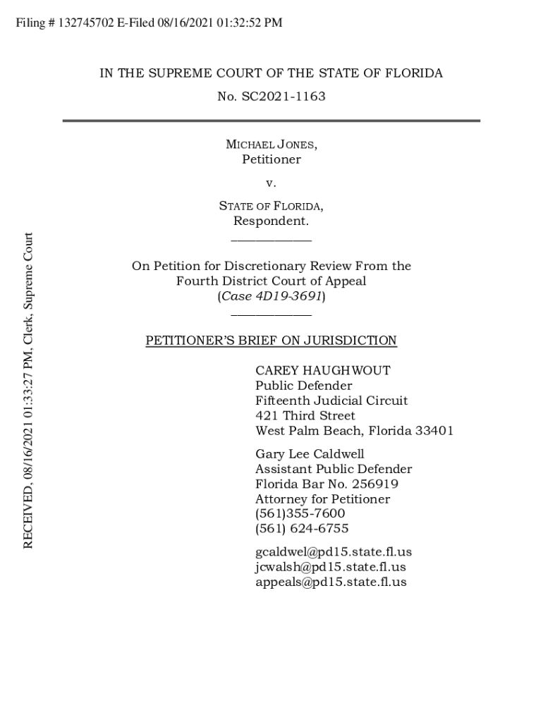 Filing # 132745702 Filed 08/16/2021 01:32:52 PAIN THE SUPREME COURT OF THE STATE OF FLORIDA