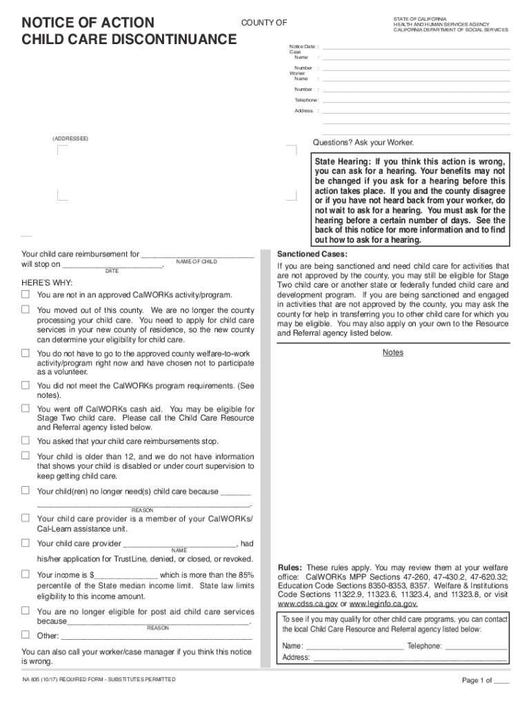 Get the free NA 835 (3/20) - Notice of Action - Required Form