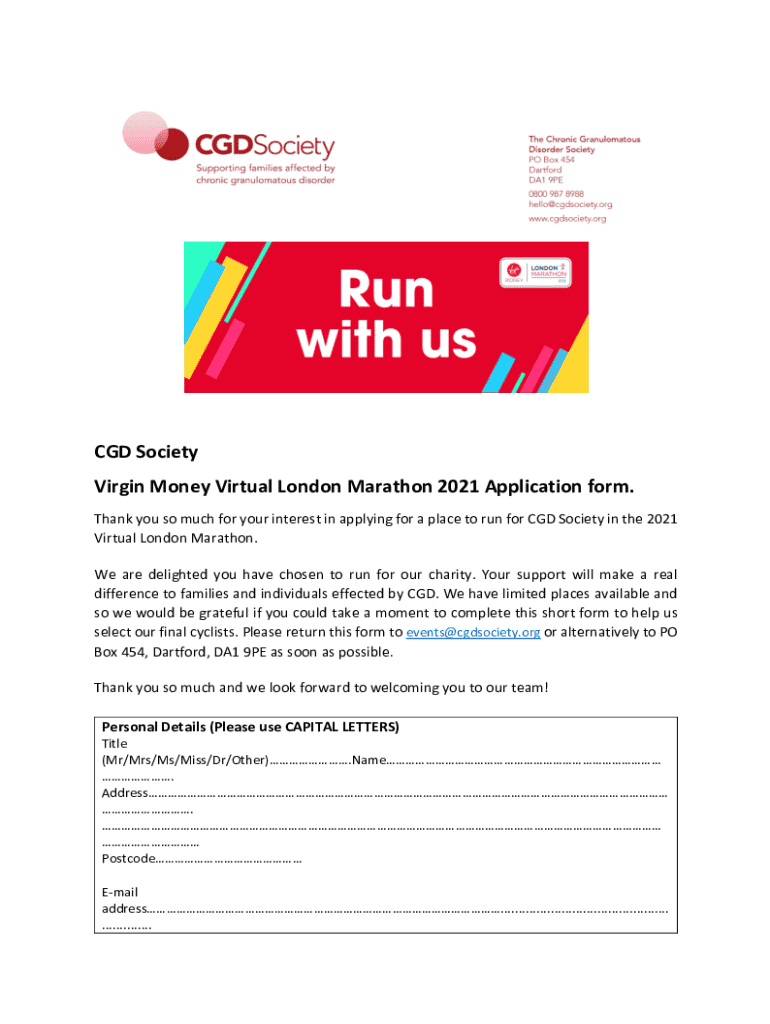 Virgin Money Virtual London Marathon 2021 Application form.