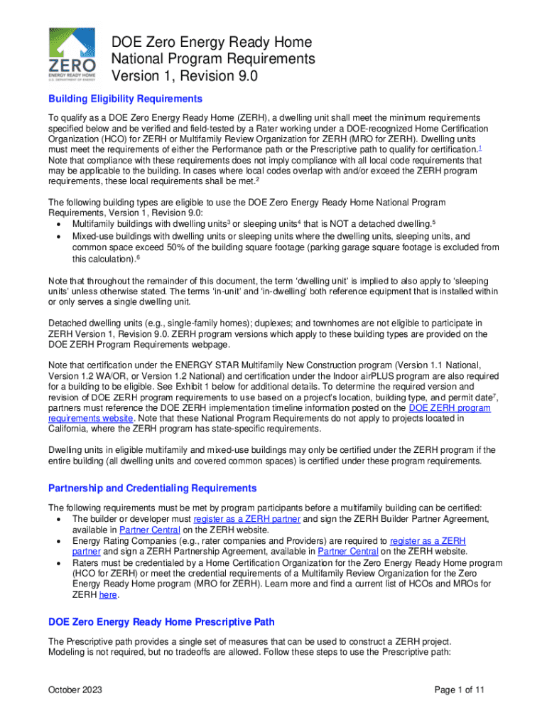 To qualify as a DOE Zero Energy Ready Home (ZERO), a dwelling unit shall meet the