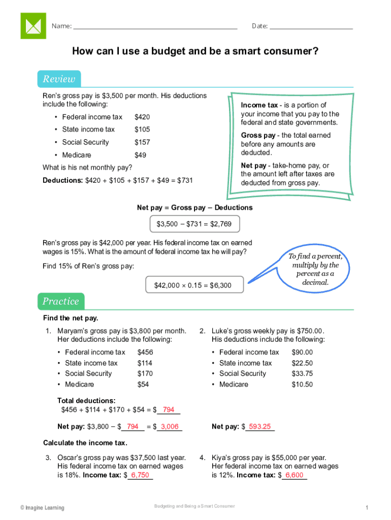 Name: ___Date: ___How can I use a budget and be a smart consumer? Review Runs gross pay is $3,500 per month. His deductions include the following: Federal income tax$420State income tax$105Social