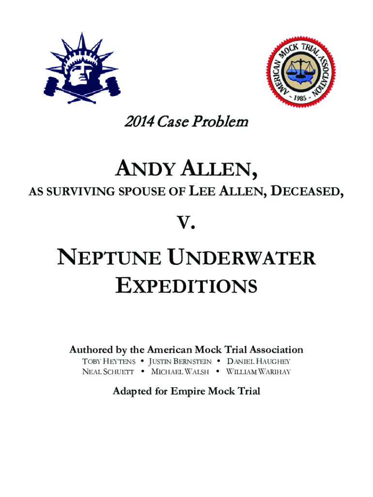 Get the free ANDY ALLEN, V. NEPTUNE UNDERWATER EXPEDITIONS