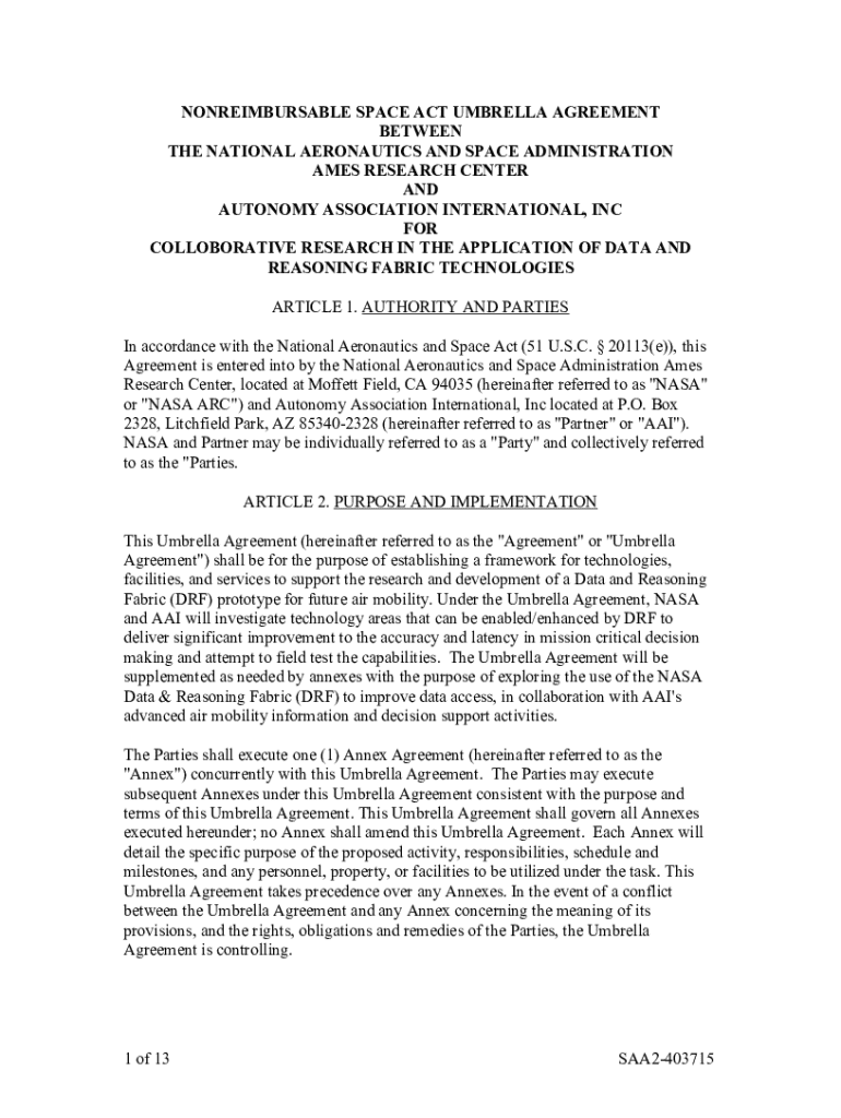 REIMBURSABLE SPACE ACT UMBRELLA AGREEMENT