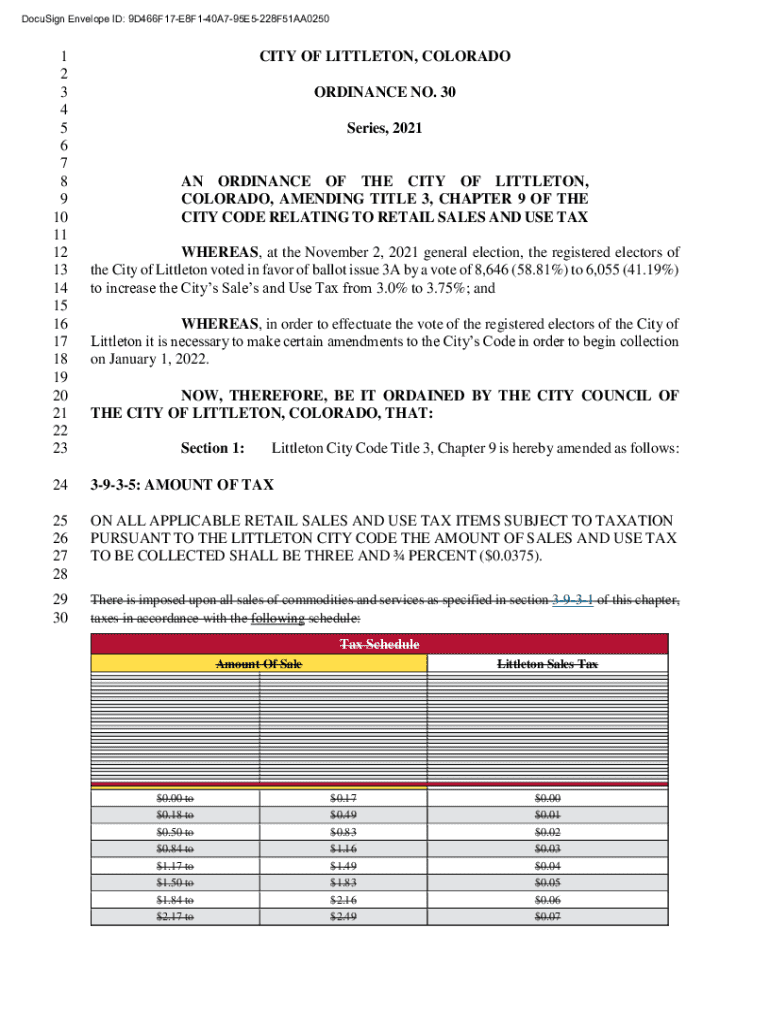 Get the free CITY OF LITTLETON, COLORADO 1 2 ORDINANCE NO. 30 3 4 ...