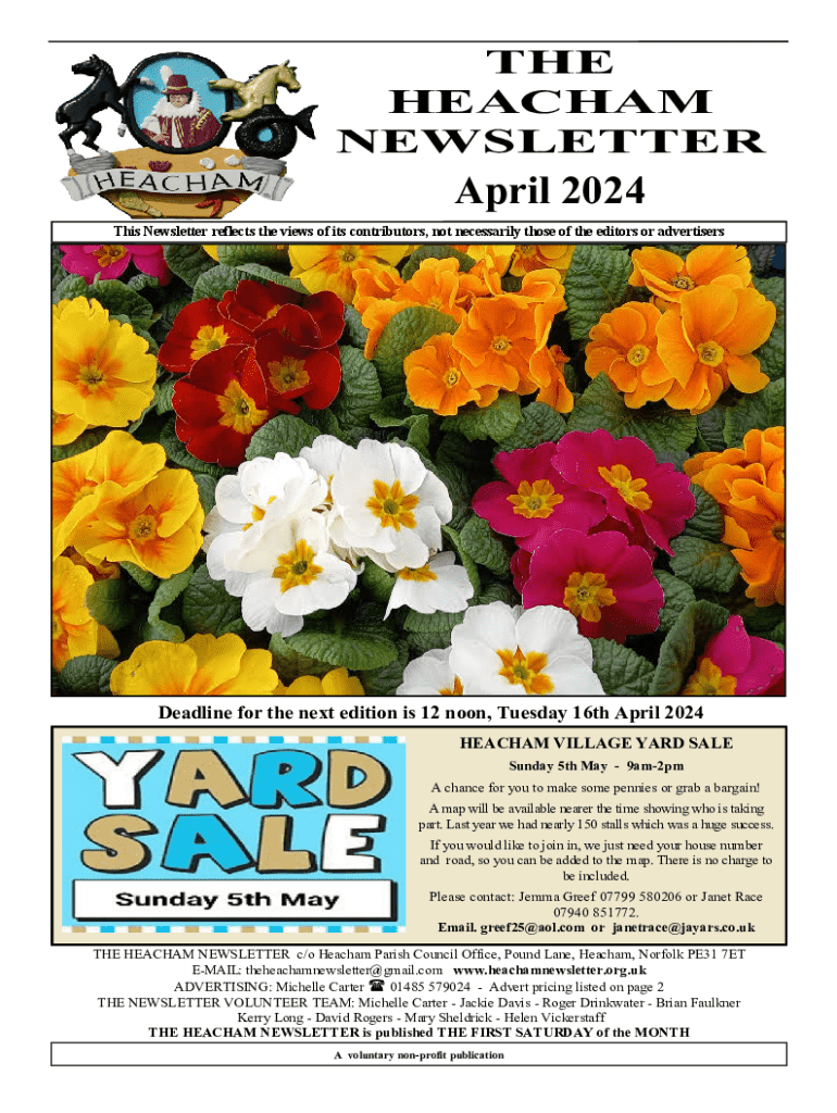 This Newsletter reflects the views of its contributors, not necessarily those of the editors or advertisersDeadline for the next edition is 12 noon, Tuesday 16th
