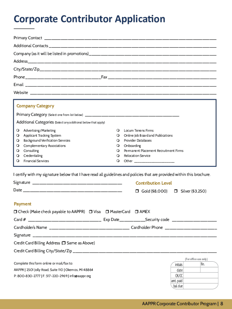 Corporate Contributor Program Gain yearround visibility of your brand with your target audience by utilizing the AAPPR Corporate Contributor Program.This program is designed to increase the awareness