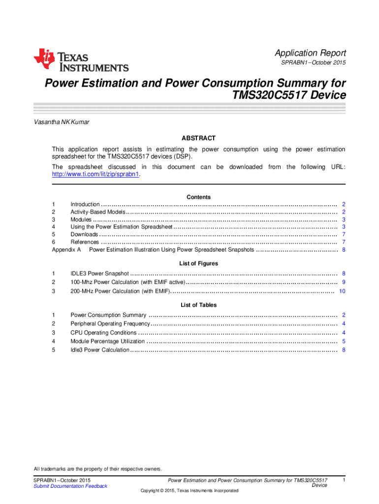 Get the free Power Estimation and Power Consumption Summary for TMS320C5517 Device. Application R...