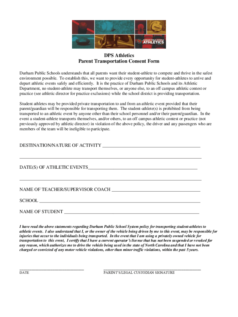 DPS Athletics Parent Transportation Consent Form Durham Public Schools understands that all parents want their studentathlete to compete and thrive in the safest environment possible. To establish