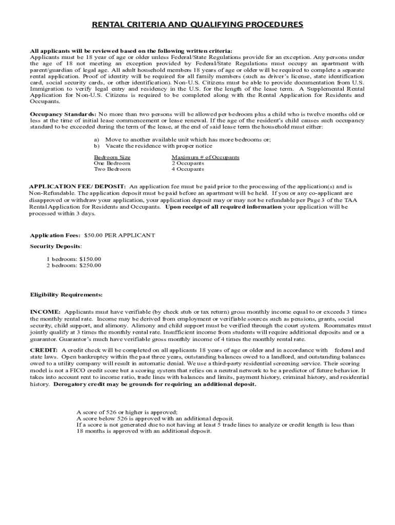 RENTAL CRITERIA AND QUALIFYING PROCEDURES