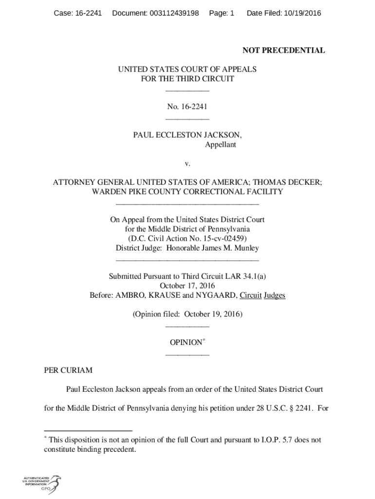 No 16-2241paul eccleston jackson refers to a specific form or document, likely related to a legal or administrative process. The exact nature of the document is not specified.