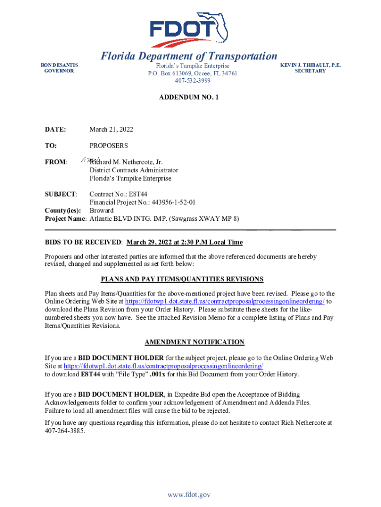4075323999ADDENDUM NO. 1DATE:March 21, 2022TO:PROPOSERSFROM:Richard